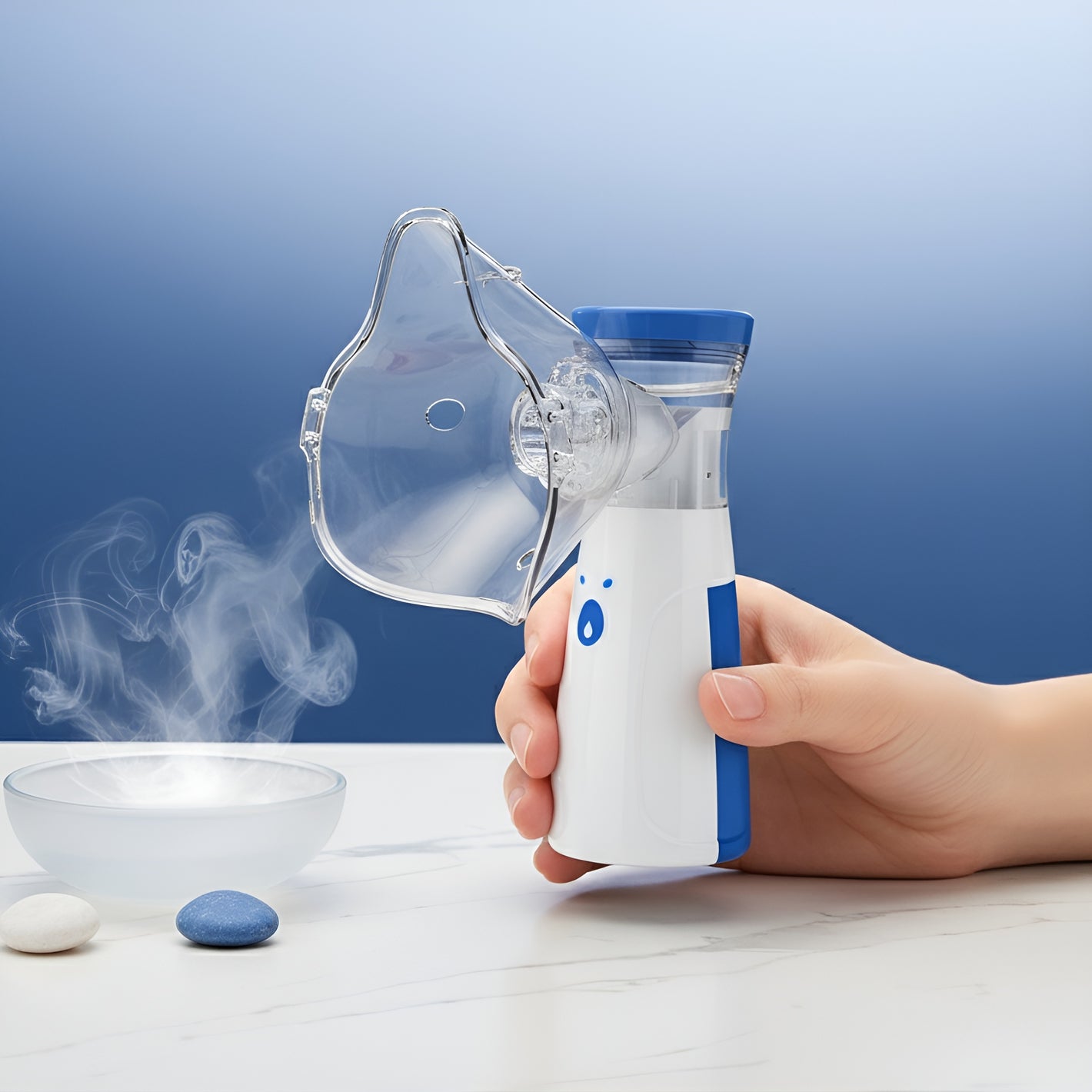 The device disassembles easily. Rinse the mask, mouthpiece, and chamber with warm water after each session, then let them air dry. Regular cleaning ensures long lasting performance and hygiene.